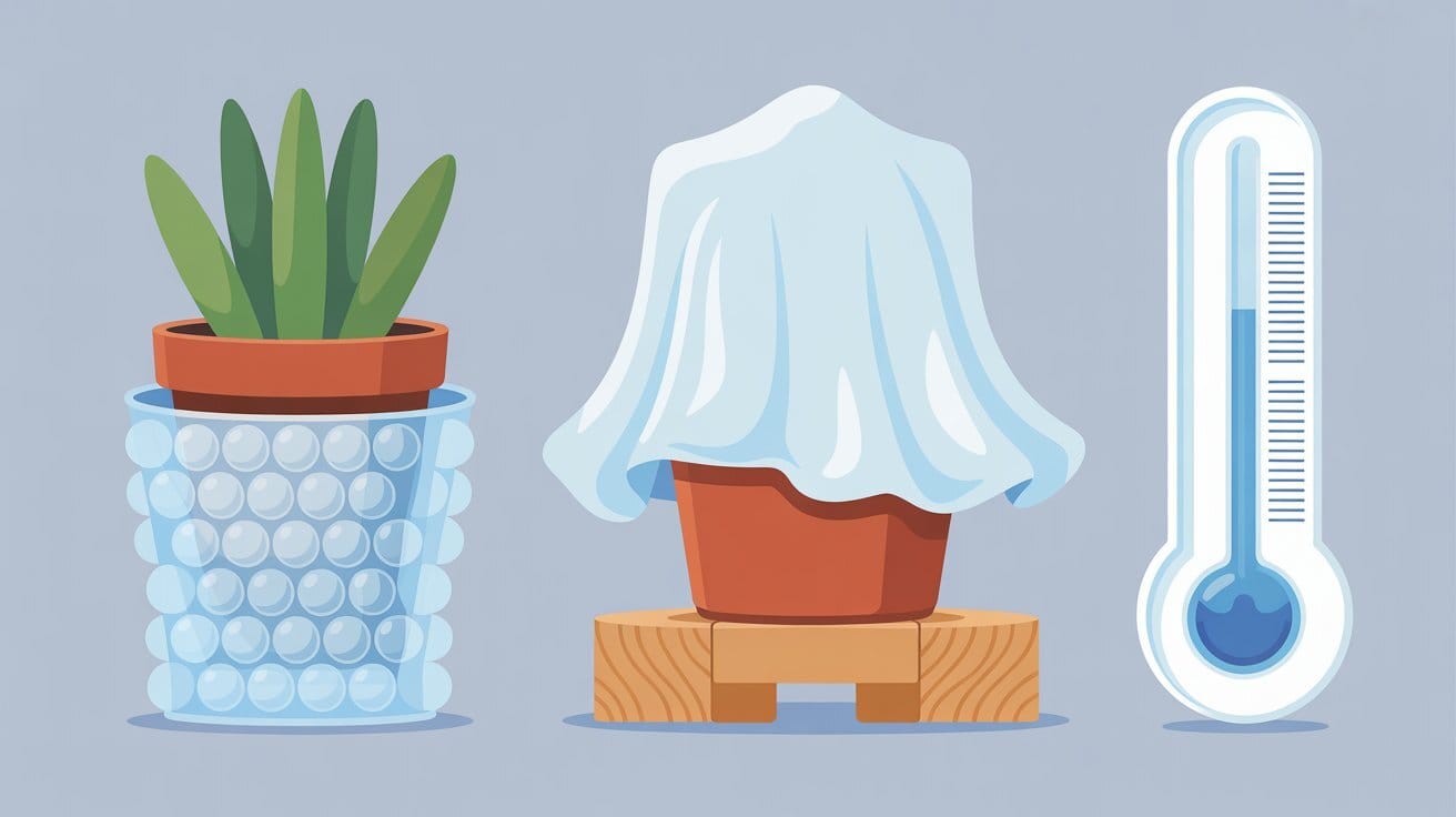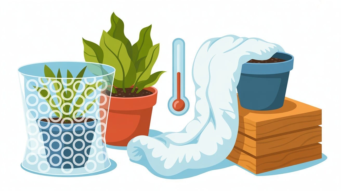 Töpfe mit Luftpolsterfolie, Jutesäcken oder Vlies umhüllen